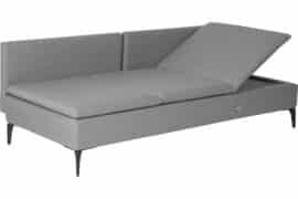 Moderne og komfortabel 3-seter sofa med innebygd solseng og Sunbrella-tekstil. Sortlakkerte bein. Kan stå ute hele sesongen og er enkel å rengjøre.