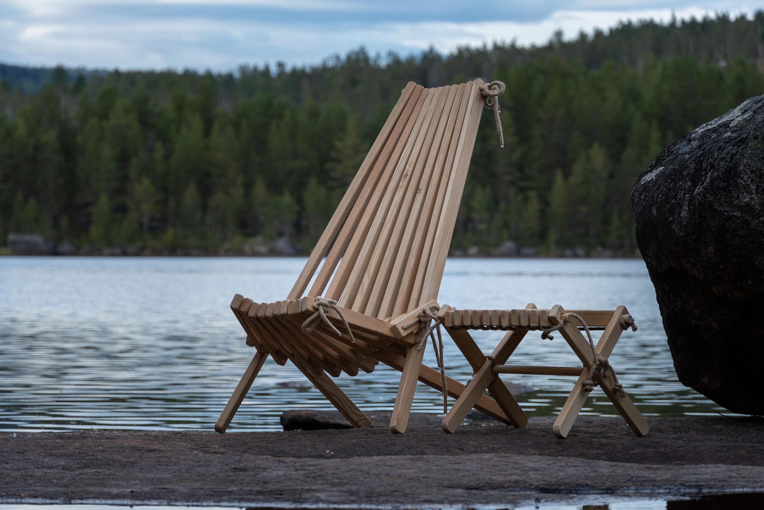 EcoFurn® EcoChair er en solid loungestol laget kun av heltre i lerk og hampetau. Hampetauet er stolens hjerte, som binder sammen delene og gir fleksibilitet slik at trestolen tilpasser seg underlaget. Derfor står den stødig selv på ujevne flater som stein, gress eller fjell. Den enkle, nordiske konstruksjonen gir naturlig komfort og en avslappet sittestilling som gjør den perfekt til både uteplassen, hytta, badstuen eller hjemme i stua. Lerk er et unikt og naturlig materiale som egner seg perfekt både inne og ute – året rundt.