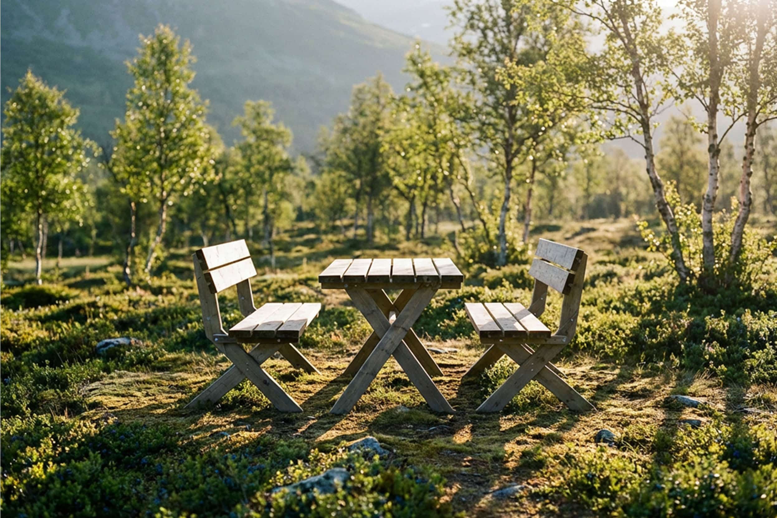 Hovden spisegruppe er et solid og innbydende hagesett i impregnert furu – perfekt for lange sommerkvelder og hyggelige måltider ute. Settet består av et romslig bord og to komfortable benker med ryggstøtte, alle med dekorative kryssben som gir både stabilitet og et klassisk preg. Med kraftige materialer (90 × 42 mm) og gjennomført håndverk tåler denne gruppen både vær og bruk. Bordet måler 149 × 75 × 74 cm, og benkene 149 × 66 × 89 cm – god plass til hele familien.