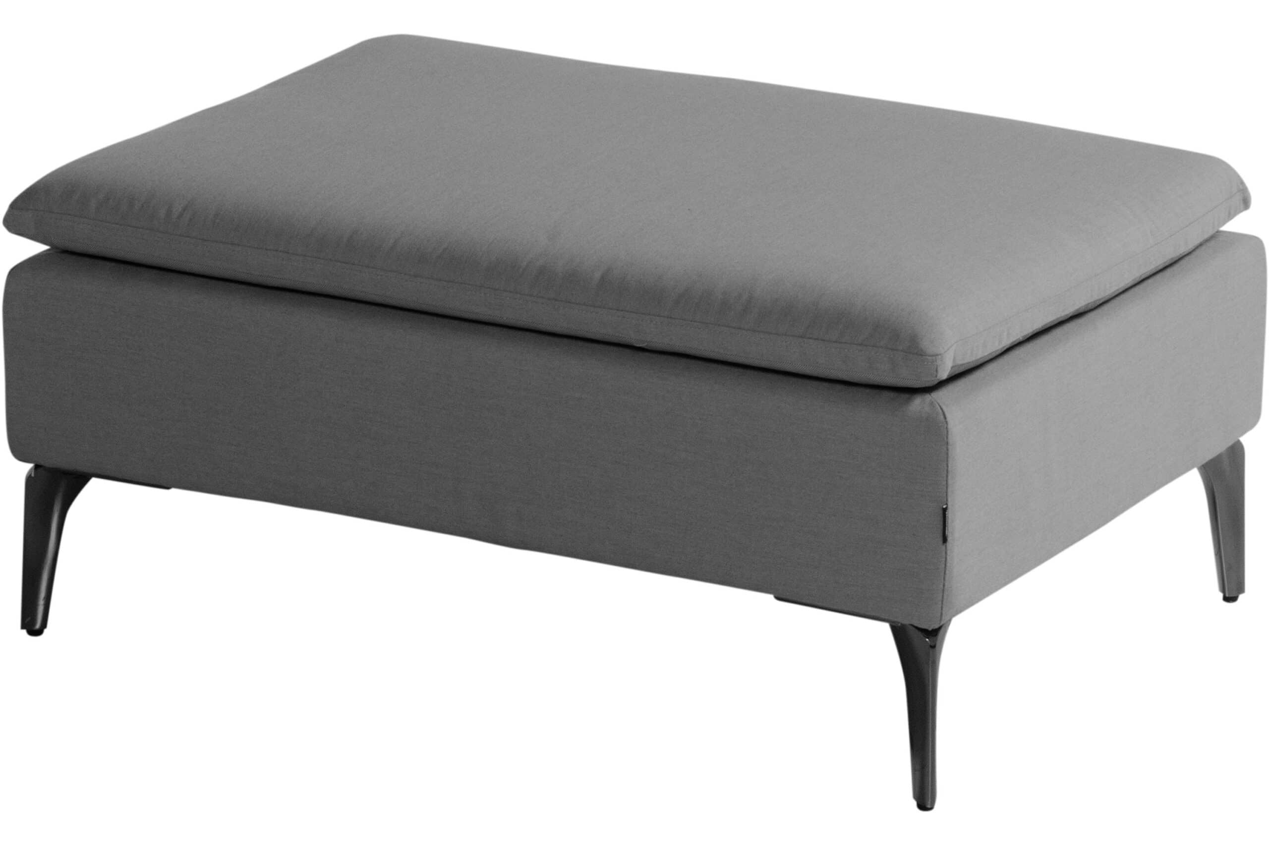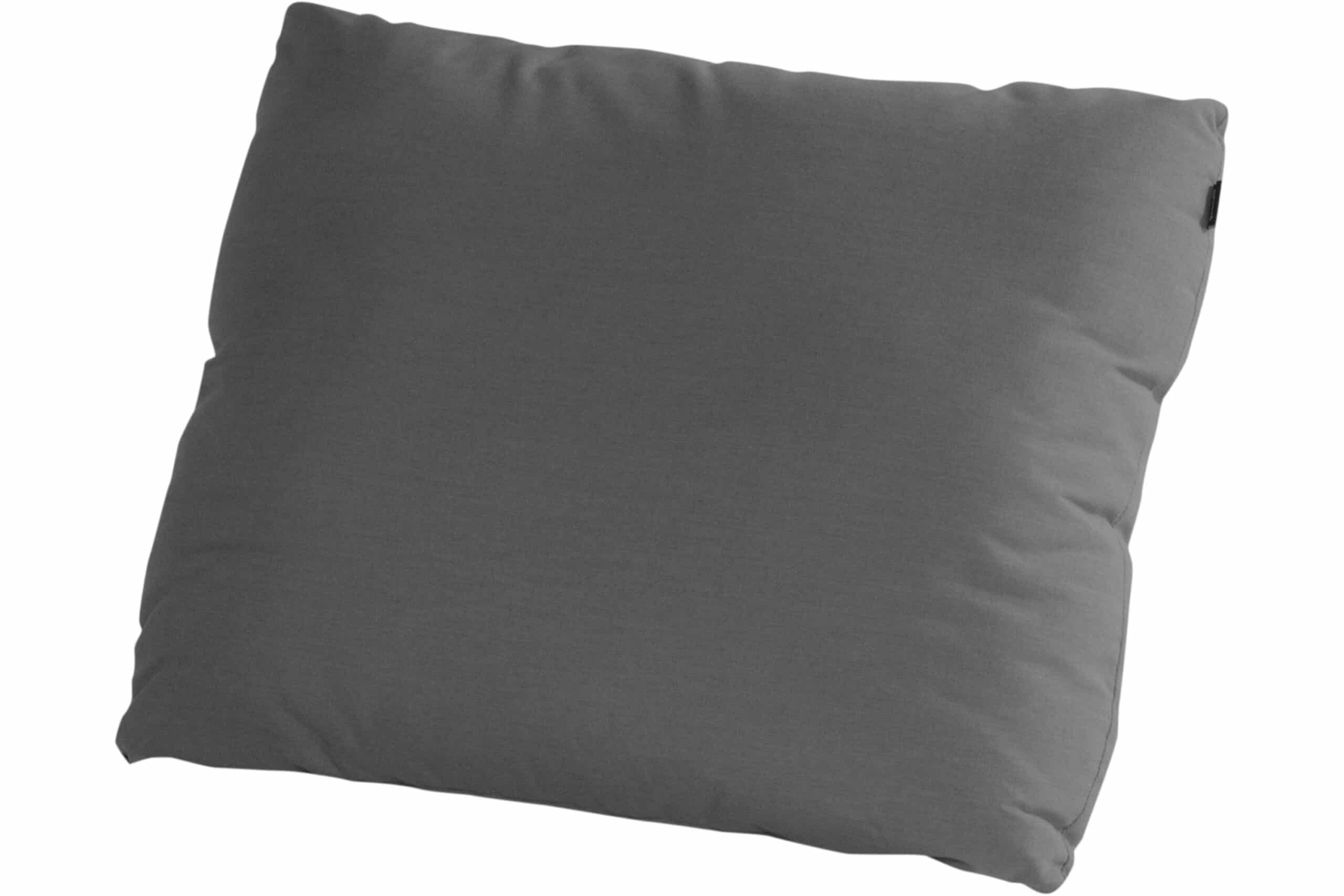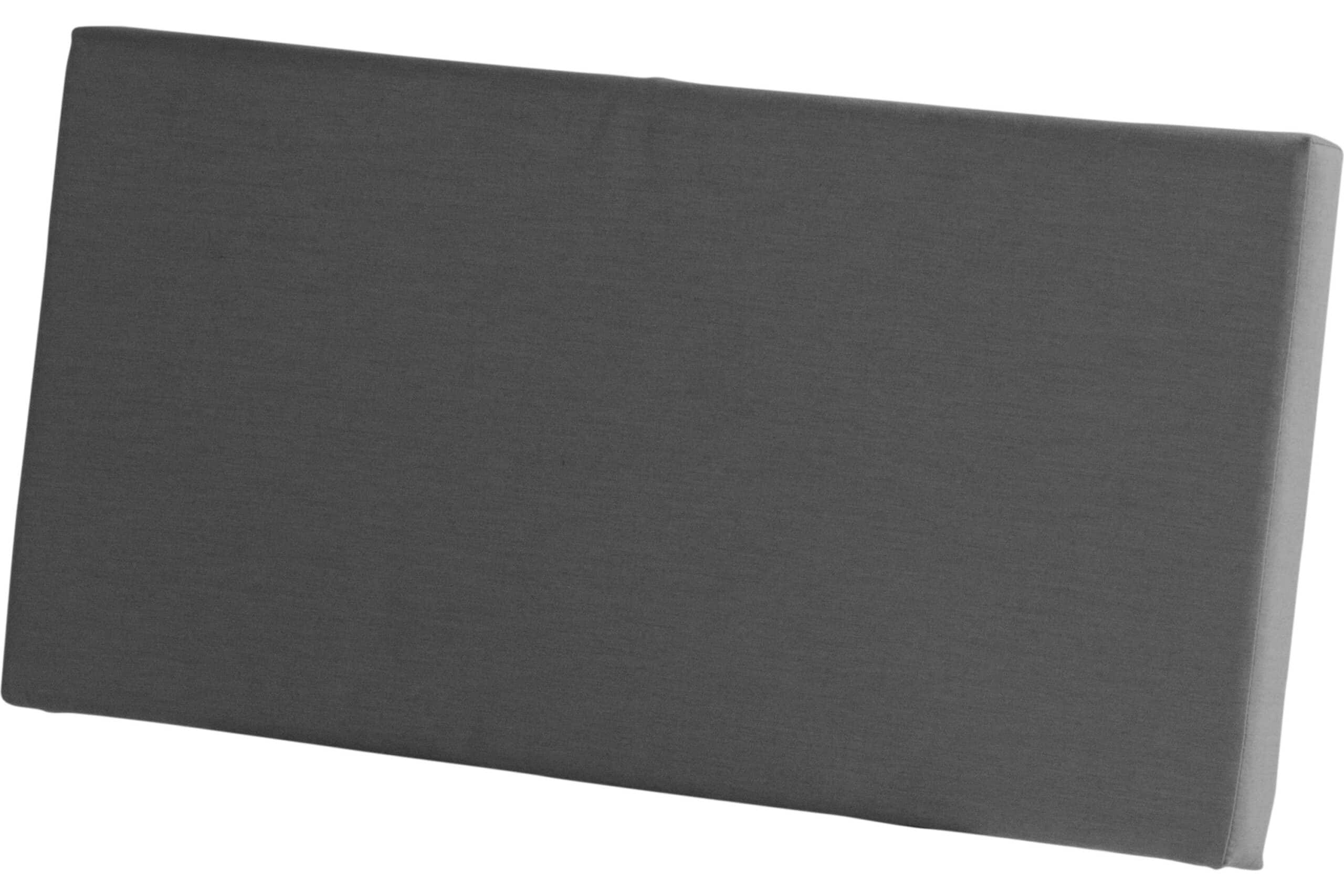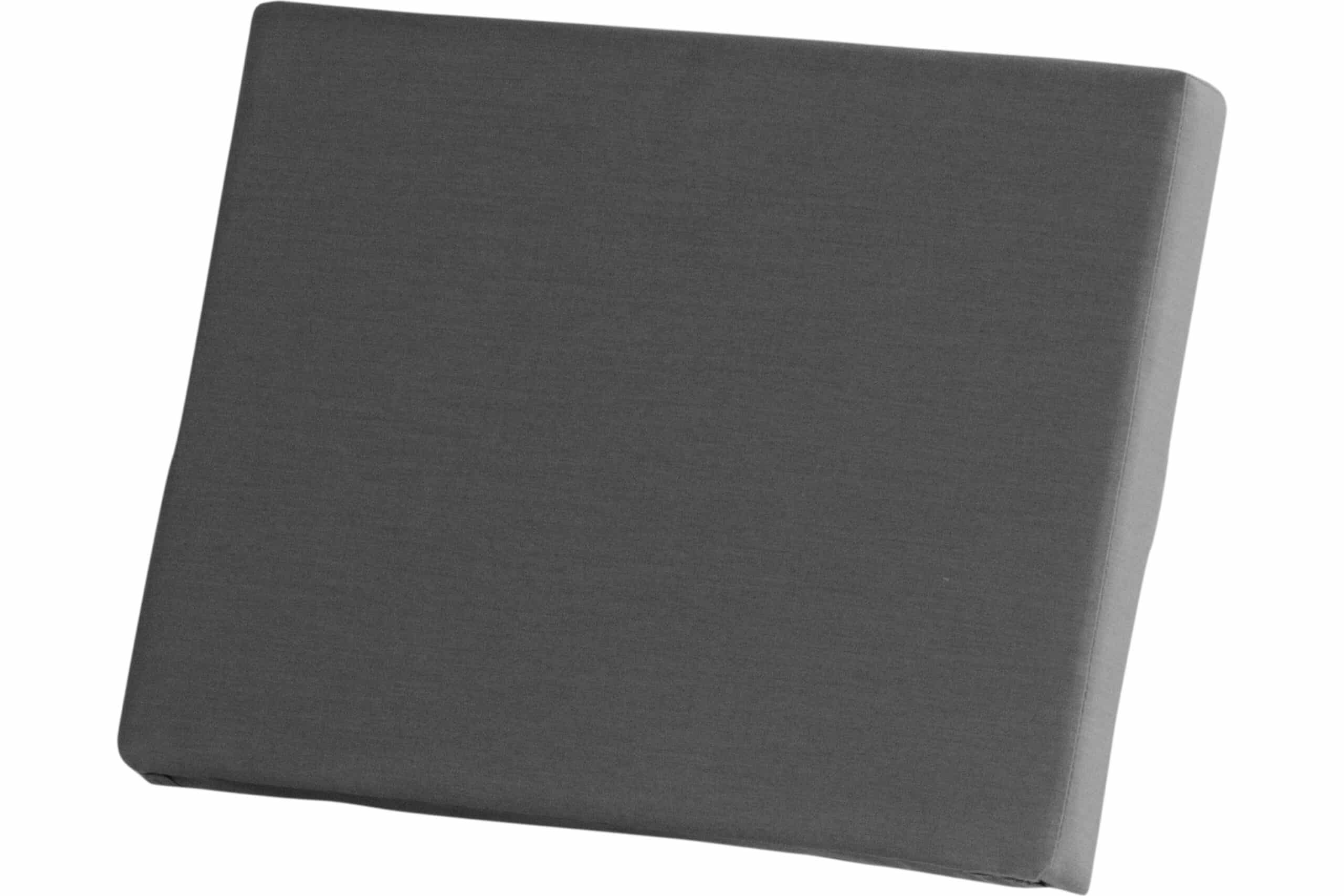 Alle puter er trukket i Sunbrella flanelle — en mørk antrasittgrå med lett melert tekstur som spiller godt mot det sortlakkerte aluminiumet. Skummet i setene er vanndrenerende, noe som gjør at gruppen tørker raskt etter regn og er klar til bruk igjen på kort tid. Tekstilet er enkelt å tørke av og har fem års garanti mot solfalming. Vanger og rygg kan tas av, noe som gjør rengjøring og eventuell oppbevaring enklere. Sett opp gruppen en gang — og la den stå.