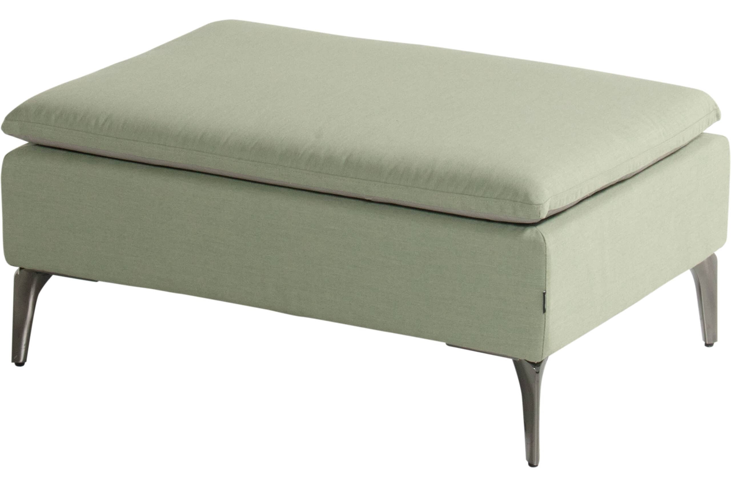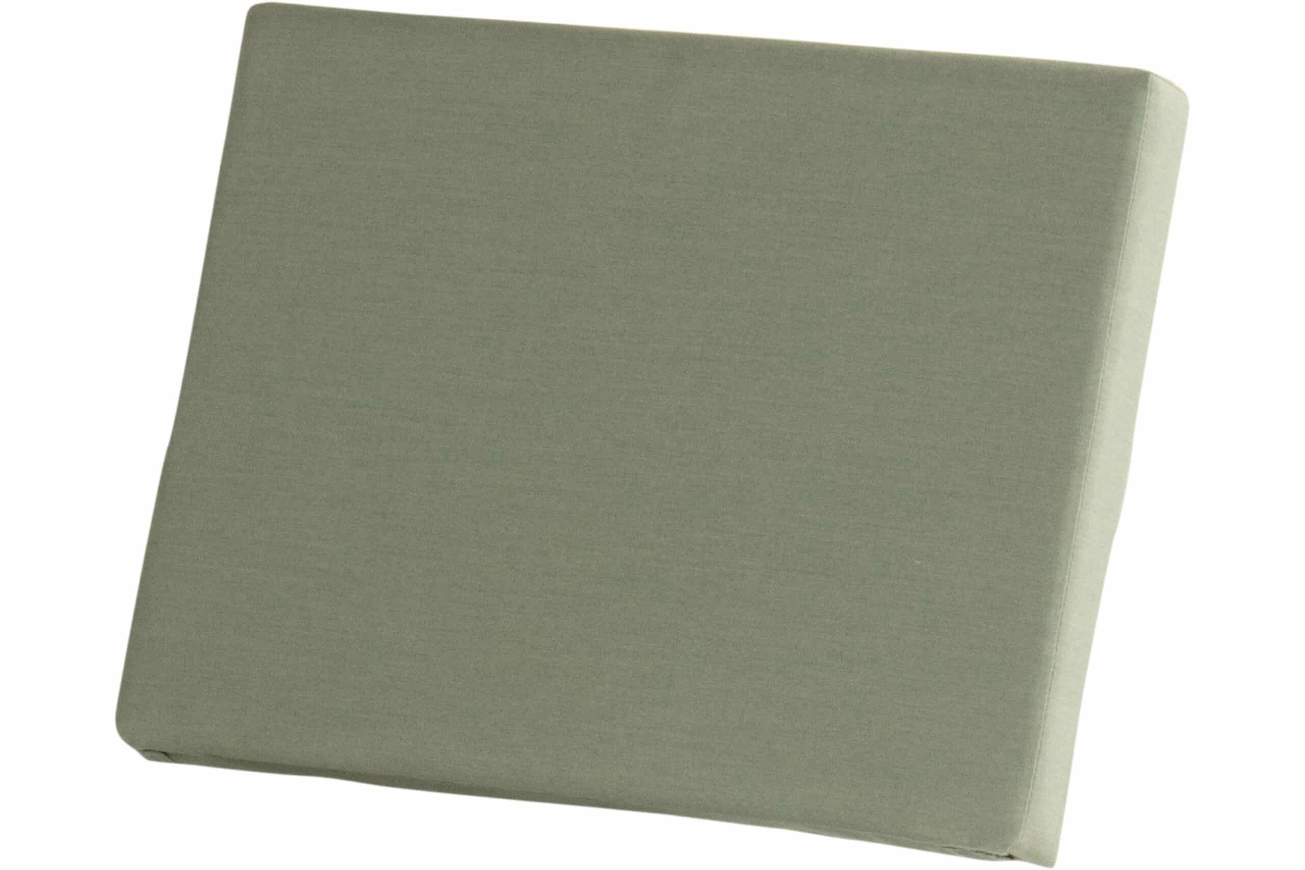 Alle puter er trukket i Sunbrella almond — en dempet salvie-grønn med olivenundertone som spiller godt mot det sortlakkerte aluminiumet. Skummet i setene er vanndrenerende, noe som gjør at gruppen tørker raskt etter regn og er klar til bruk igjen på kort tid. Tekstilet er enkelt å tørke av og har fem års garanti mot solfalming. Vanger og rygg kan tas av, noe som gjør rengjøring og eventuell oppbevaring enklere. Sett opp gruppen en gang — og la den stå.