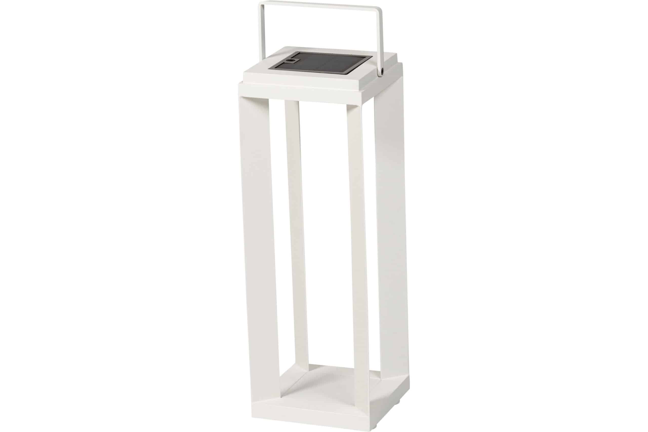 Lysne LED-lampe er perfekt for utendørs bruk, med tre ulike lysstyrkenivåer og mulighet for lading via solcellepanel eller medfølgende USB-kabel. Denne praktiske og dekorative lampen kan brukes både ute og inne. Den har et varmt og behagelig LED-lys og tennes automatisk når det blir mørkt. Fulladet lyser den i 5-7 timer. Den tåler regnvær, men bør lagres tørt under tak når den ikke er i bruk. Lampen er hvit og laget av pulverlakkert aluminium som gjør at den aldri ruster.