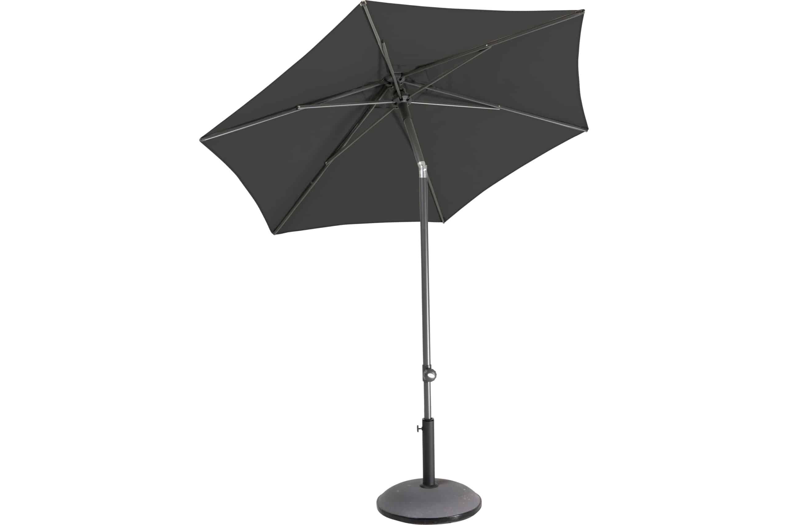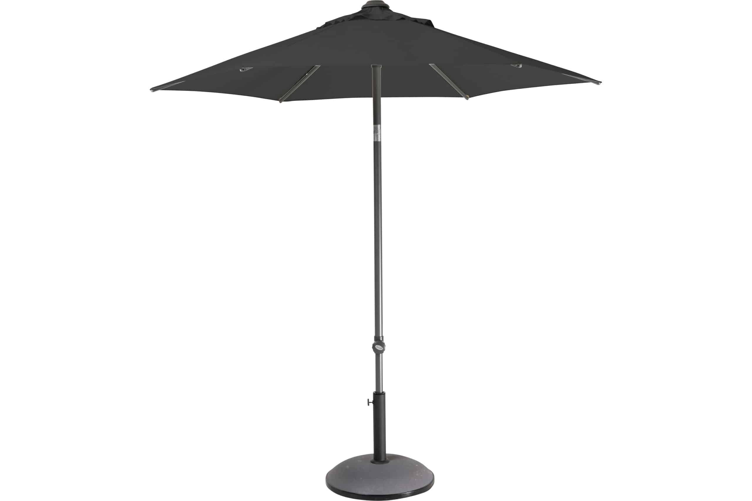 Parasoll av typen pop-up med størrelse Ø2 meter. Pulverlakkert stang i aluminium med diameter Ø 38/35 mm og knapp for tilt. Duken er i 220g polyester med fargeektehet på nivå 4 og har 6 stk spiler i stål.