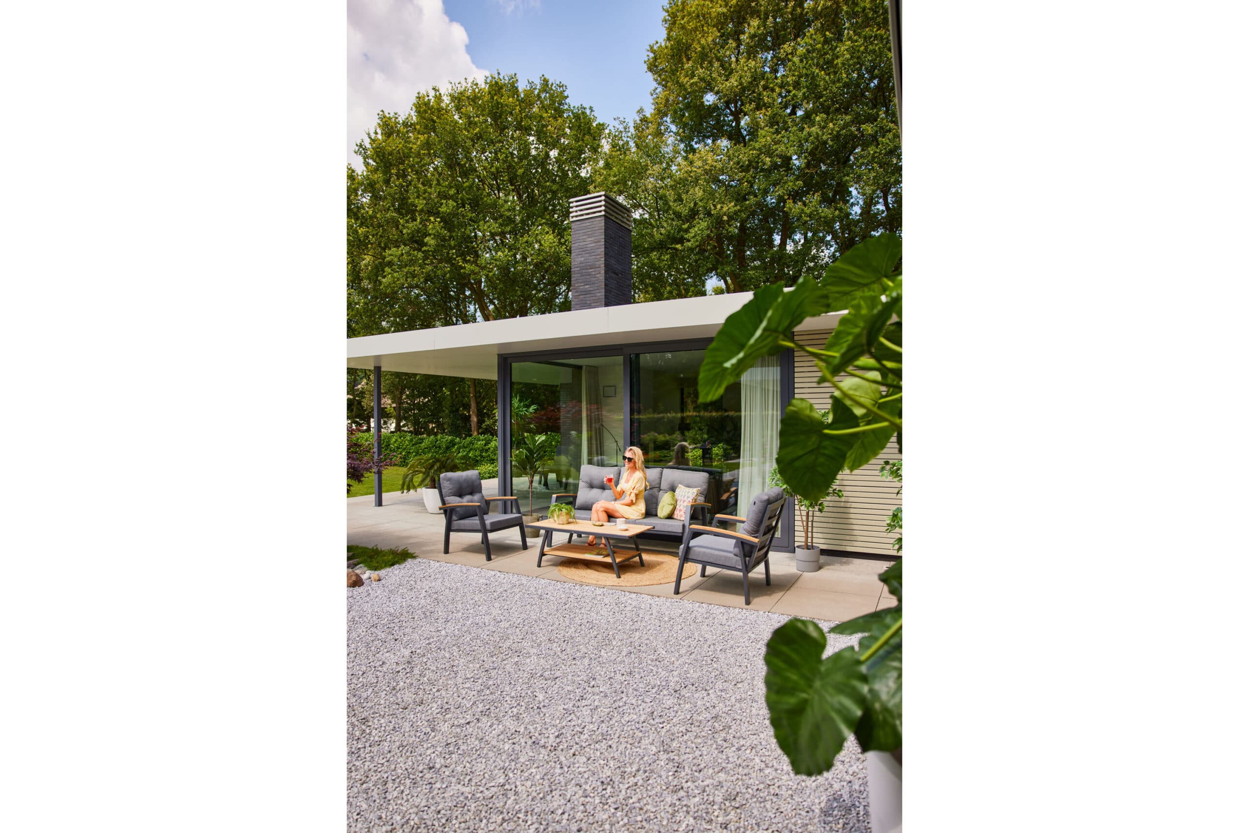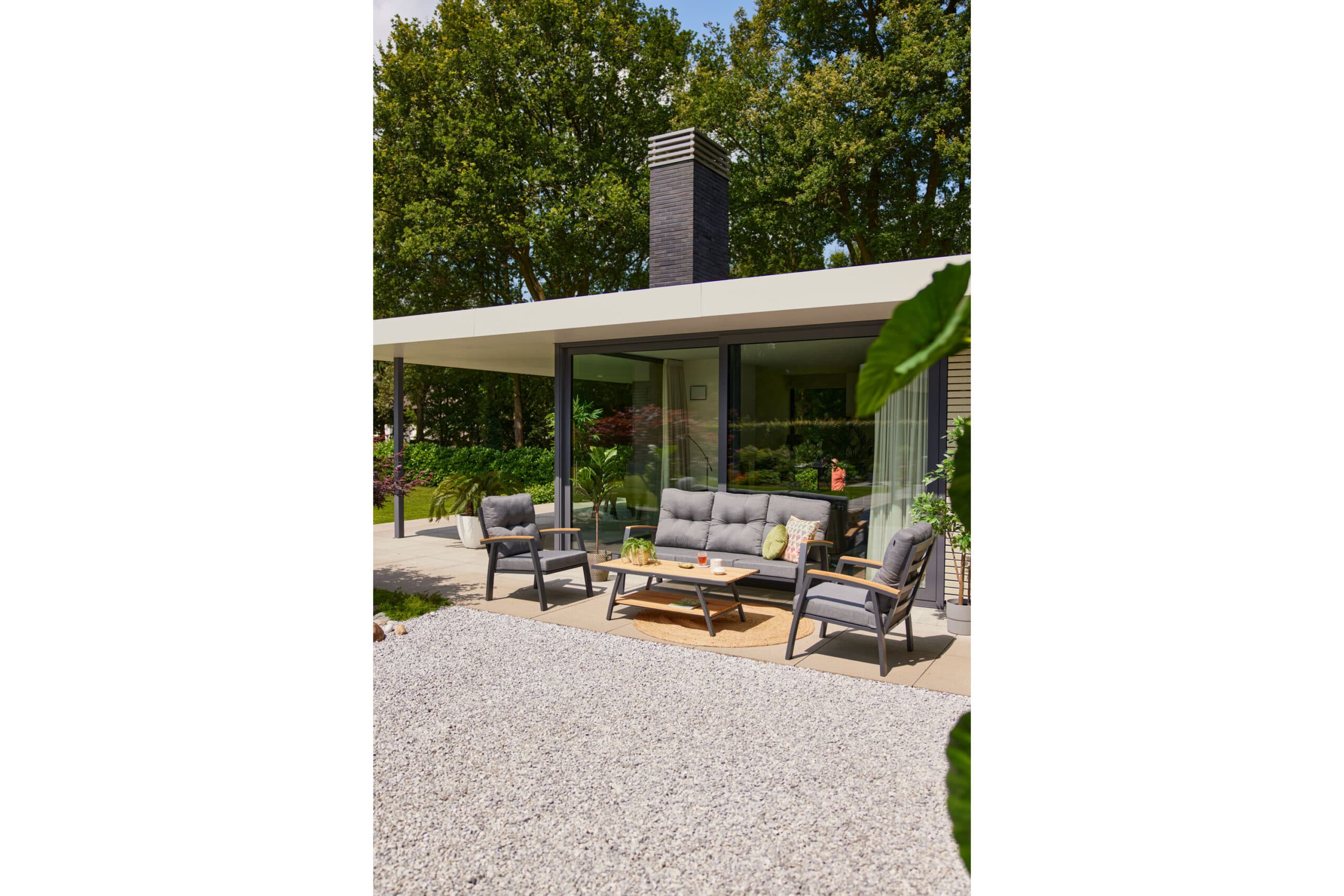 Armlenene har detaljer i teak fra FSC-sertifisert skog, noe som gir en naturlig varme til designet. Denne sofagruppen er designet for å tåle norsk vær, og du kan la den stå ute fra vår til høst uten bekymringer. Med Stefano får du en sofagruppe som kombinerer moderne materialer med klassiske detaljer, og som er like behagelig å sitte i som den er enkel å vedlikeholde.